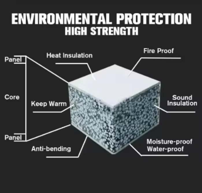 EPS Fiber Cement Sandwich Panels are composed of exterior panels and interior core filling to form a non-load-bearing light weight composite wall panel. The exterior panels on both sides
